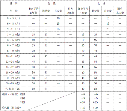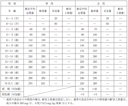 ビタミンC の食事摂取基準(mg/日)