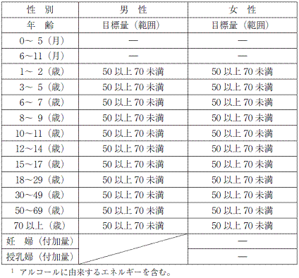 炭水化物の食事摂取基準(% エネルギー)1