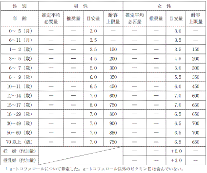 ビタミンE の食事摂取基準(mg/日)1
